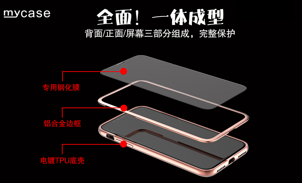 材 质:电镀TPU软壳+铝合金边框+钢化玻璃
